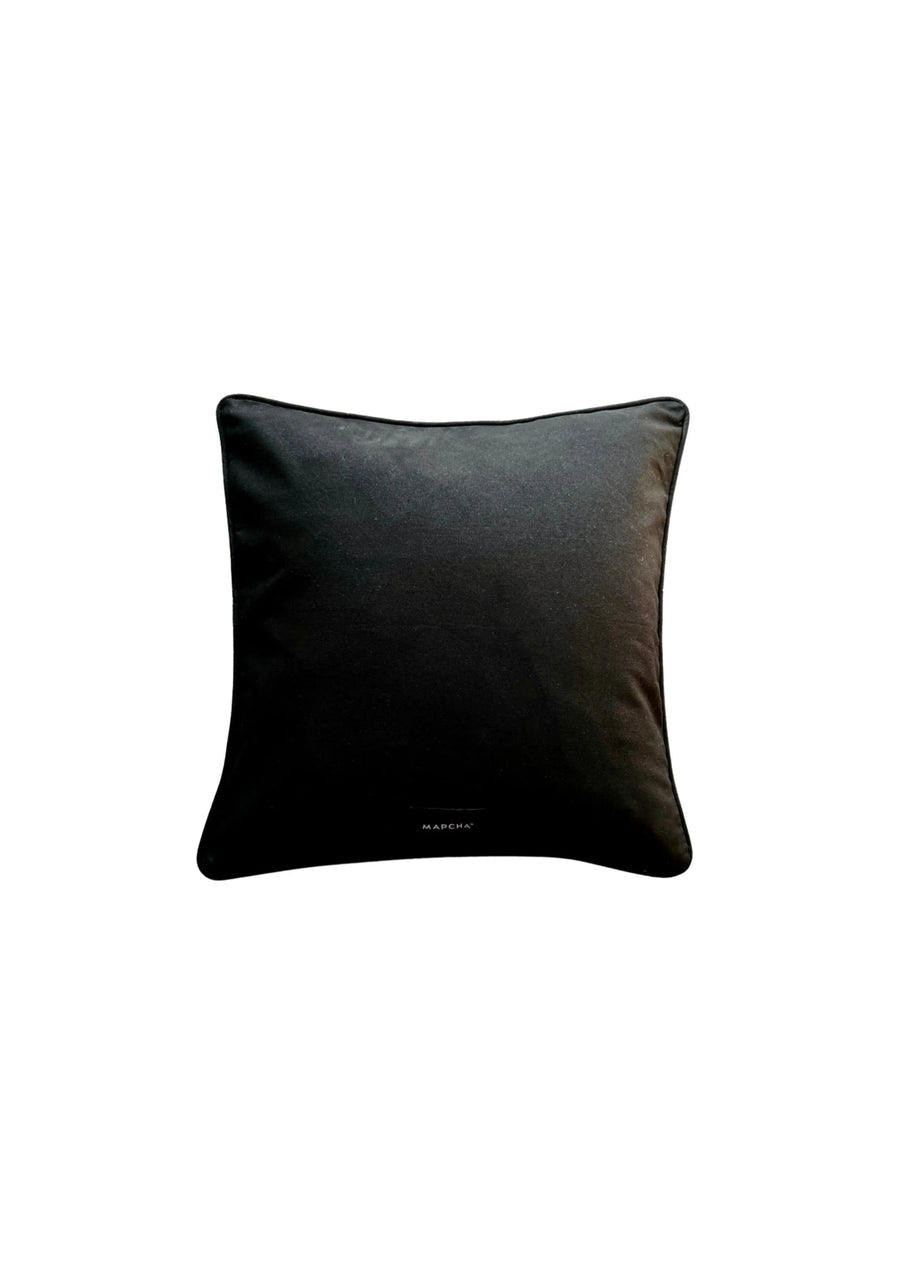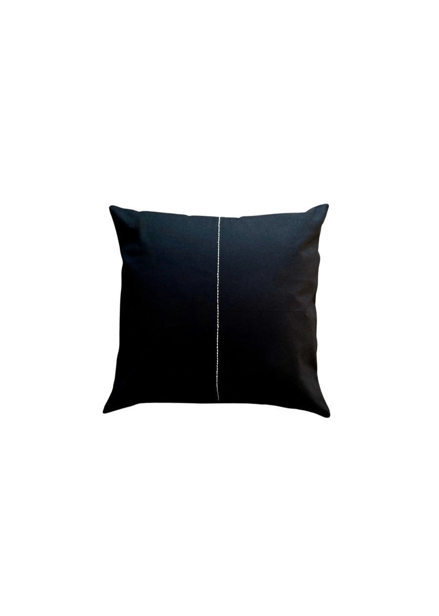 The solid black cushion cover adorned featuring a line embroidery running through its center, creating a subtle yet captivating contrast against the rich black fabric. Crafted from 100% premium cotton and featuring a concealed zipper, this minimalist cover exudes sophistication and timeless appeal, making it an ideal choice for adding an elegant touch to any space.