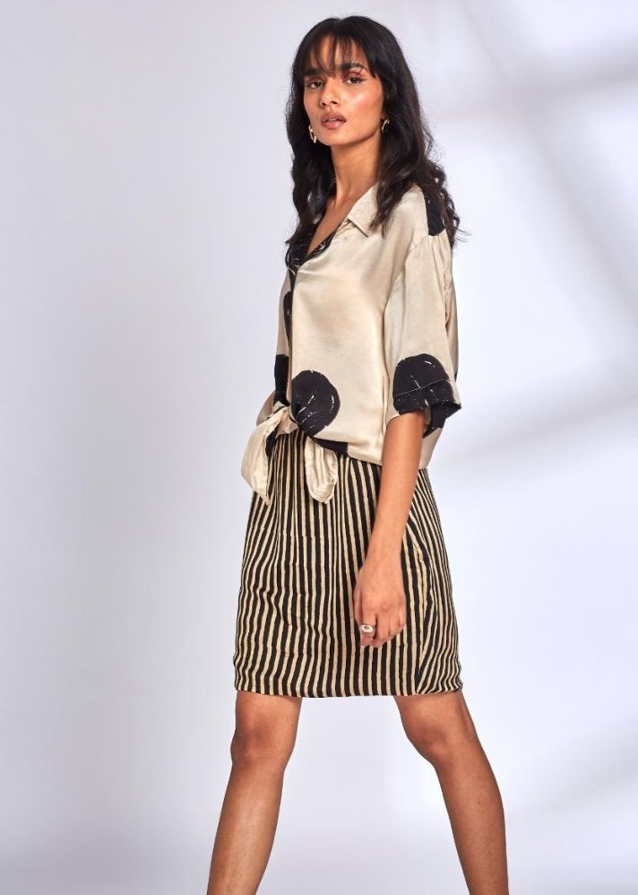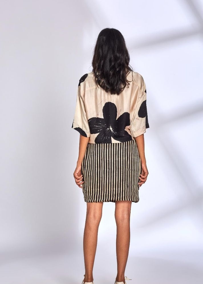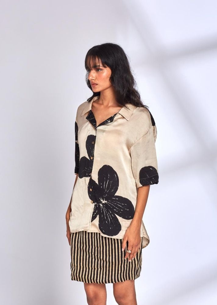 Elevate your ensemble with our Willow Modal Silk Shirt, exuding luxurious comfort and effortless sophistication. Oversized shirt Ajrakh Hand block printed Natural dyes Modal Silk Handcrafted in India. Shalini is 5'8" and She is wearing size Small.