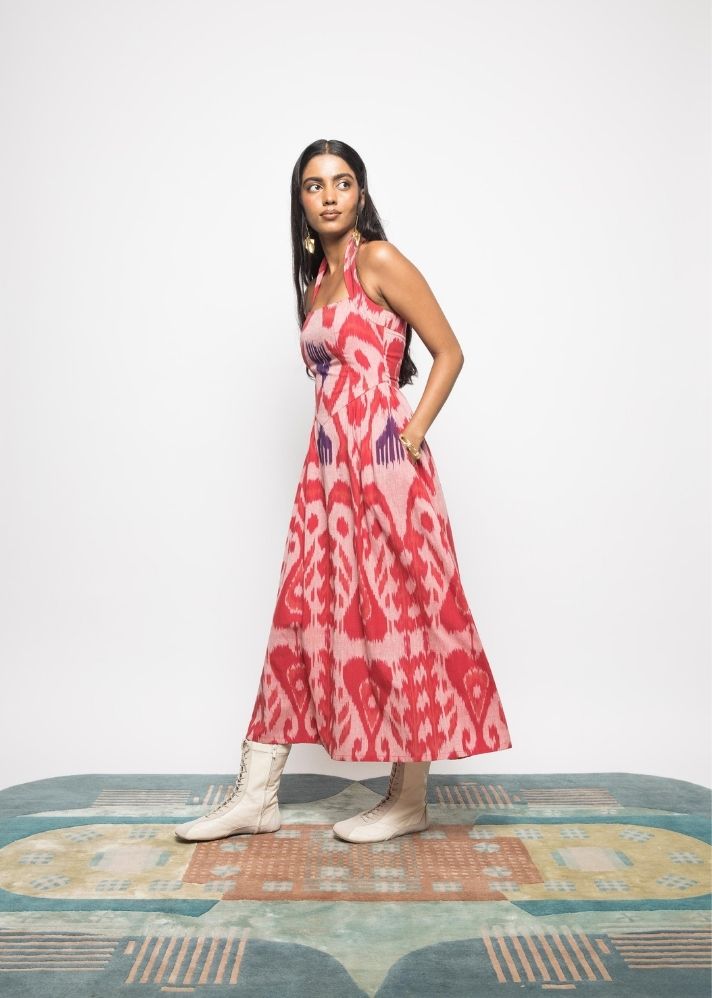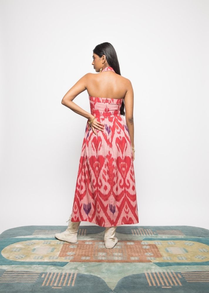 The Hakuna Matata Dress blends playful elegance with a carefree spirit. Featuring a halter neck and a flary bottom, it’s perfect for sun-kissed days and breezy evenings.