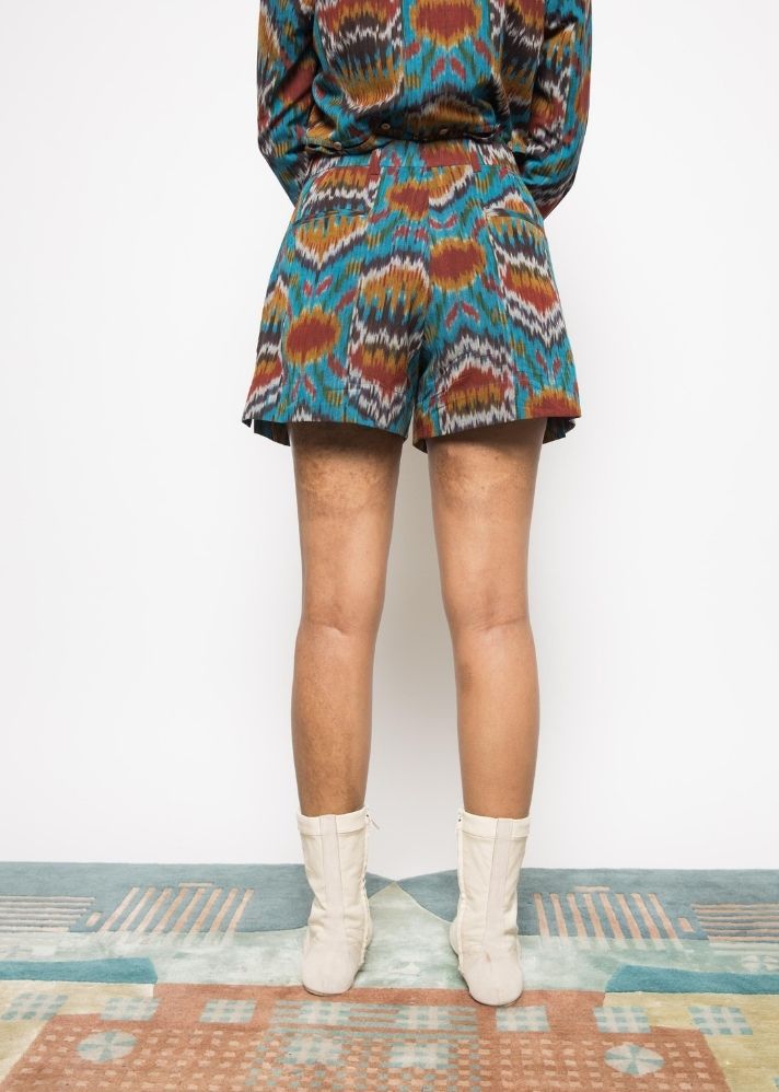 Turquoise Slouchy Pleated Shorts